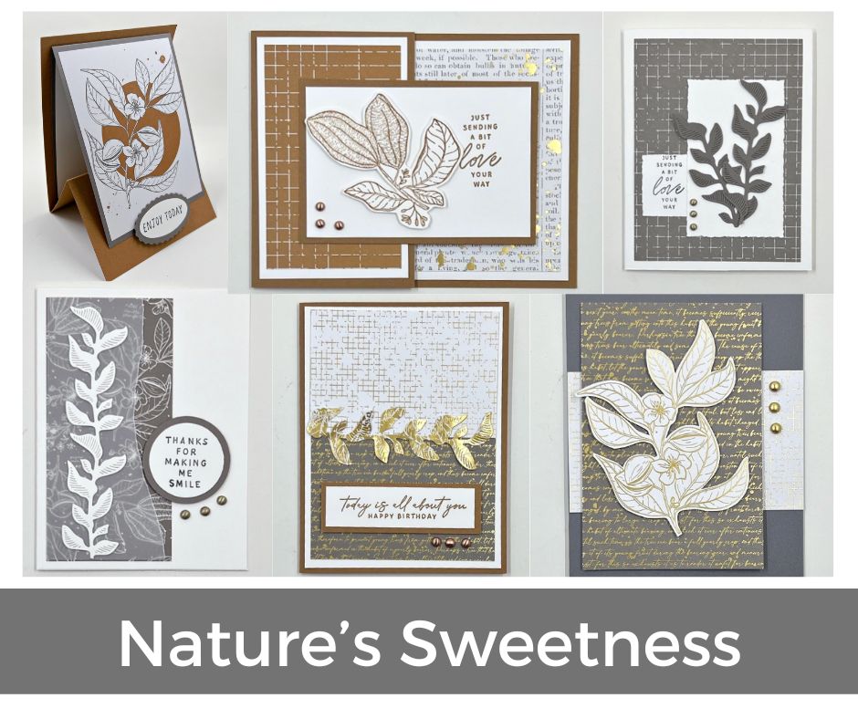 These cards are made with the Nature’s Sweetness Designer Series Paper and embellished with Brushed Metallic Dots.
